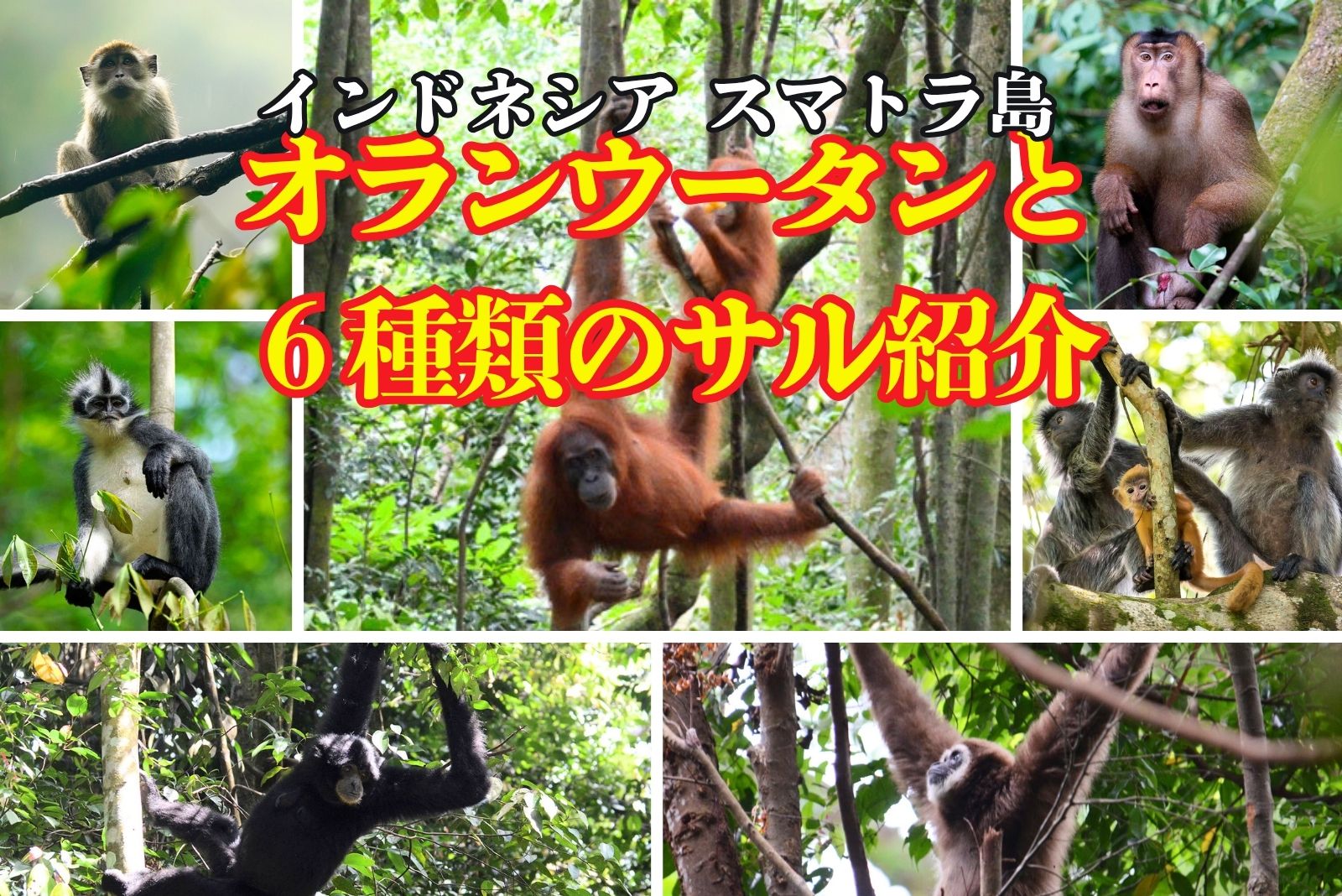 今回はインドネシアのスマトラ島の旅で出会ったオランウータンと6種類のサルについて紹介します。