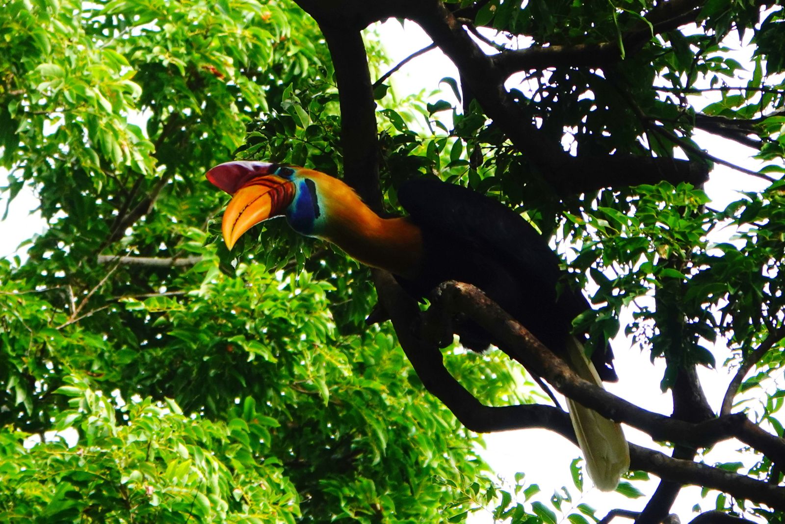 スラウェシ島固有種の大鳥アカコブサイチョウ。タンココ国立公園で出会いました。怪獣のように大きな羽音で大空を舞う姿に驚かされました。