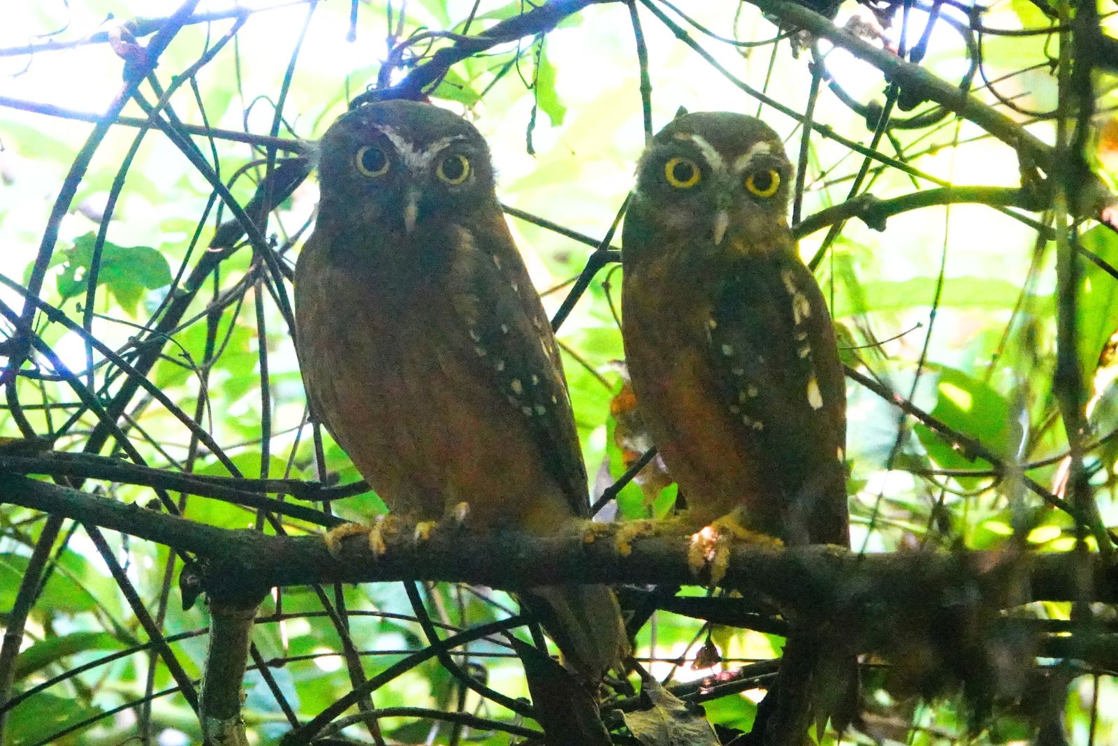 スラウェシ島タンココ国立公園で出会った2匹のチャバラアオバズク