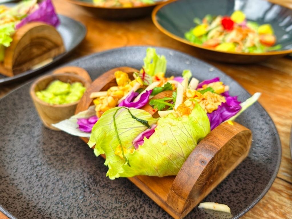 自然に囲まれたヴィラでふんだんの野菜を使った料理をお召し上がりください