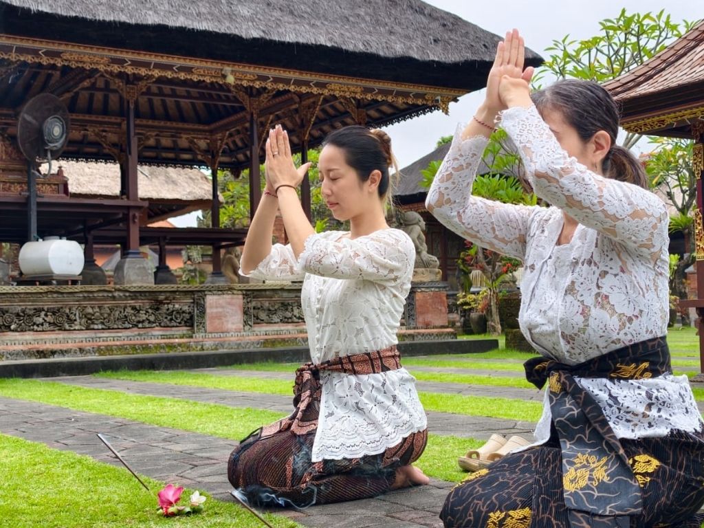 - バリヒンズー教の正装に着替えて、ガイドにお参りの仕方を教えてもらい、バリ島のバトゥアン寺院で参拝体験!